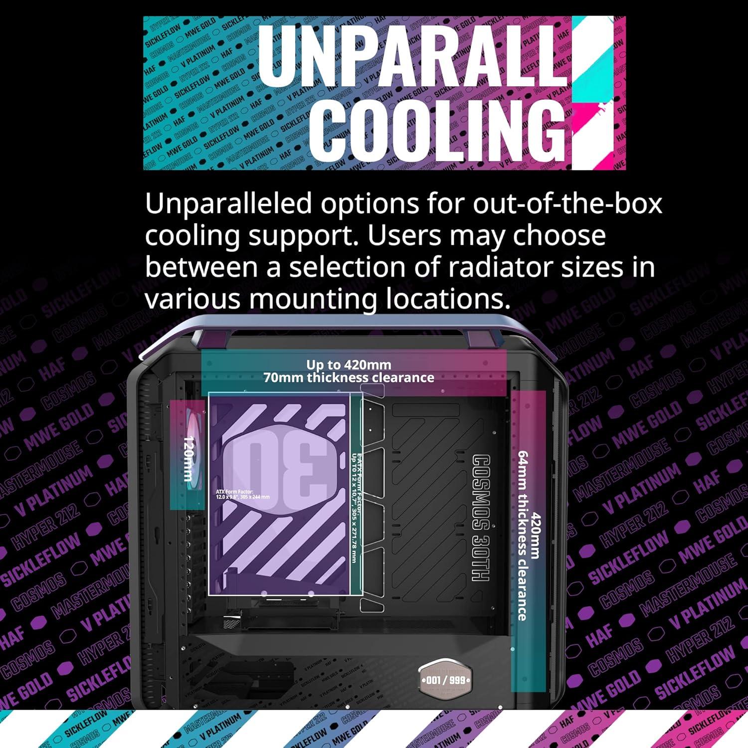 Cooler Master Cosmos C700M E-ATX Full-Tower, Curved Tempered Glass Panel, Riser Cable, Flexible Interior Layout, Diverse Liquid Cooling, Type-C, Customizable ARGB (MCC-C700M-MG5N-S00)(Infinity 30th Case)