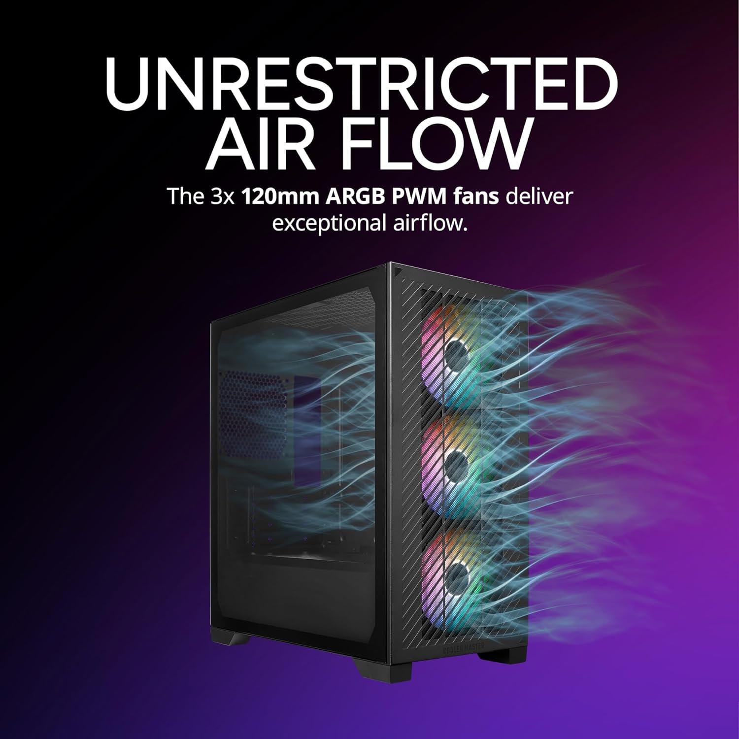 Unrestricted Air Flow: The 3x 120mm ARGB PWM fans deliver exceptional airflow.