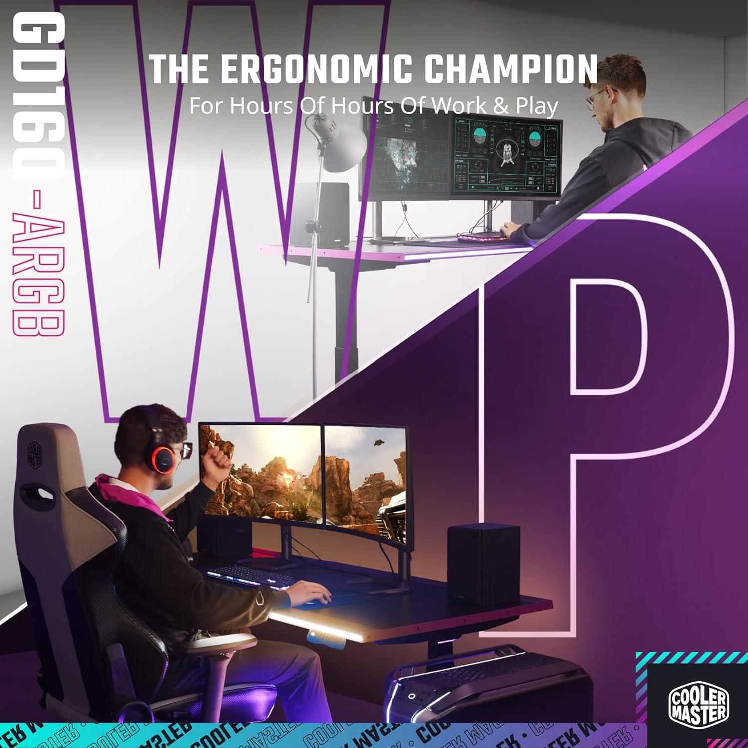 Cooler Master GD160 ARGB 63.0″D x 29.5″W Sitting and Standing PC Gaming Desk with Dual Motor Height-Adjustable, Customizable Dual Ambient Lighting, Water-Repellent Mousepad, Built-in USB Fast Charging(Gaming Table Lift)