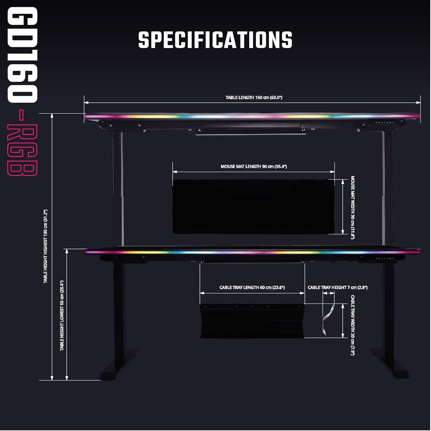 DUAL MOTOR SAFETY AND COMFORT – The GD160 ARGB desk comes equipped with dual motors that can smoothly and quickly lift the tabletop with loads of up to 220.5 lbs. The use of two motors ensures a safe operation of the table with a failsafe that locks its height even during blackouts or accidental unplugging. All motors pass a Load and Durability Test to guarantee your safety and comfort at all times.