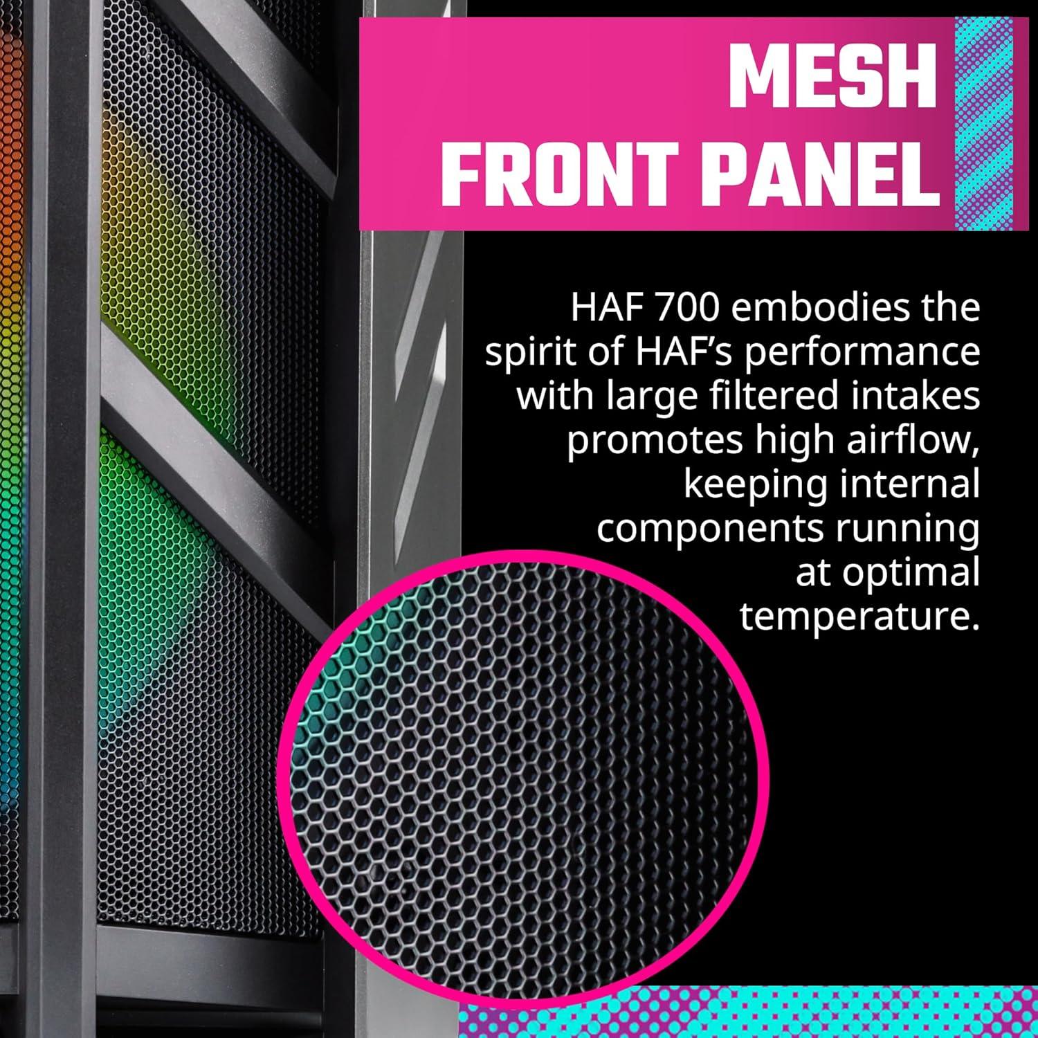 HAF 700 is a case built to brute force and shatter the ceiling of component potential, maximize results and provide the smoothest system operation experience possible.Establishing new grounds in thermal efficiency, this stealthy powerhouse elevates the function and impact of any components installed without fail. From a premium build experience, to robust quality, and performance you can rely on, each detail of HAF 700 has been fine-tuned to satisfy the needs of every power user.