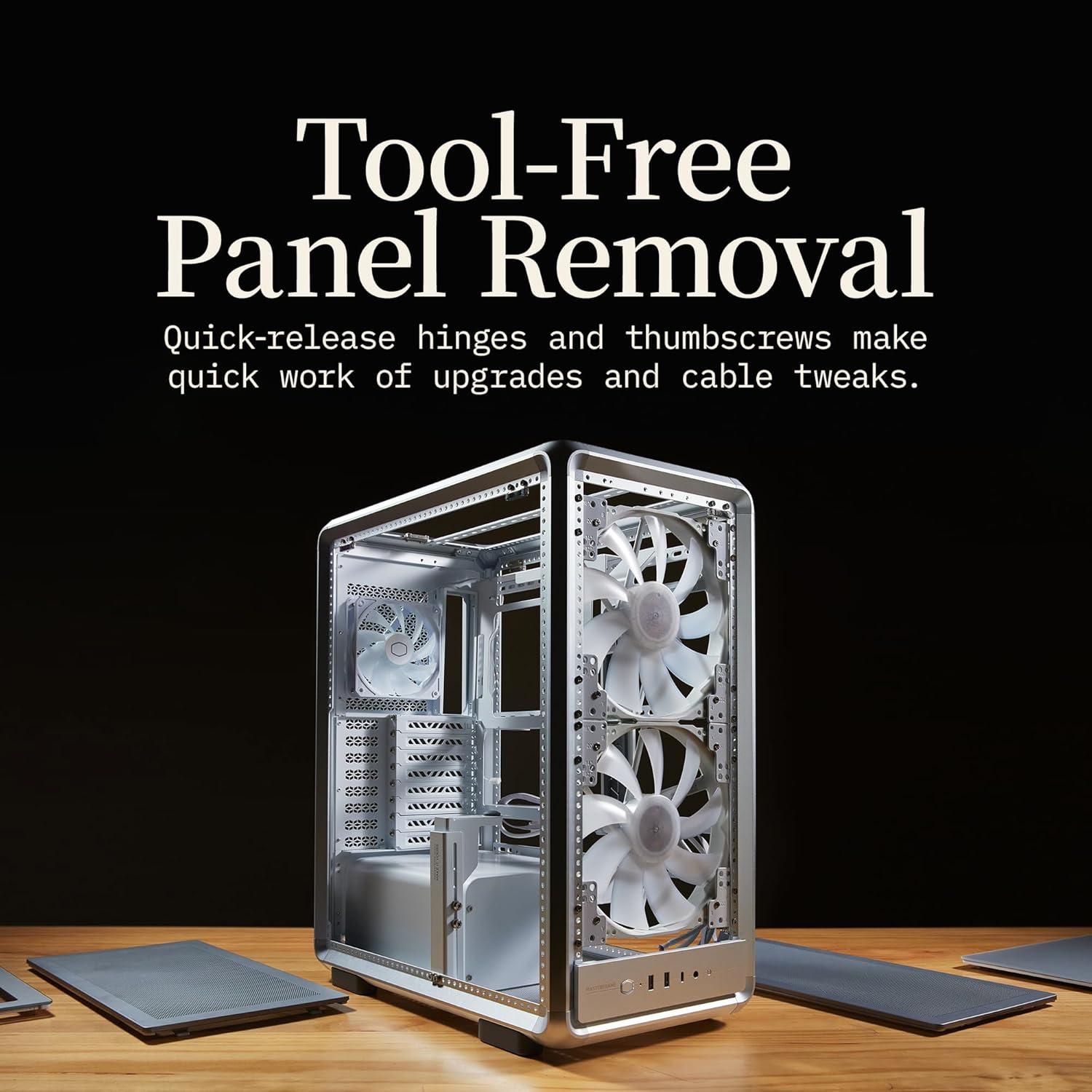 Cooler Master MasterFrame 500 Mesh aRGB Silver Freeform 2.0 Modular Platform Open-Air ATX Mid-Tower Case, Aluminum Frame,Dual 200mm aRGB Fans, 390mm GPU Max, 360mm AIO Max, Type C, Tempered Glass(MF 500 Silver)