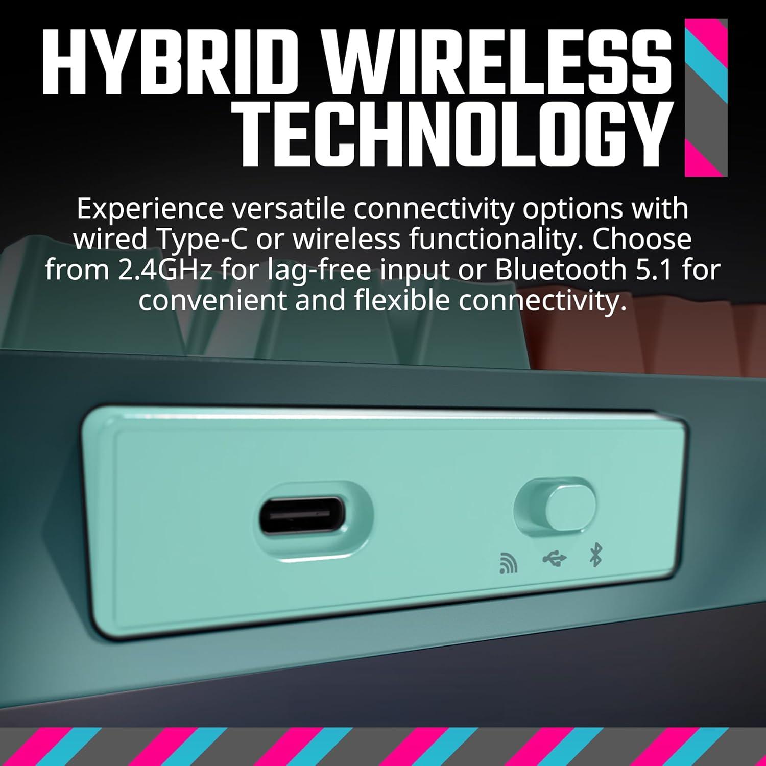 Elevate your workspace with the Cooler Master MK770 Mechanical Keyboard. With factory-lubricated Kailh Box V2 switches, a gasket structure, and a hot-swappable design, customization is easy and satisfying. Its minimalist design and unique colorway add a touch of playfulness, while PBT double-shot keycaps stay colorfast over time. With hybrid wireless connectivity and a compact 95% layout, the MK770 is versatile and convenient for those on the go. Combining form and function, this keyboard is perfect for any setup. Upgrade your typing experience with the Cooler Master MK770 Mechanical Keyboard.