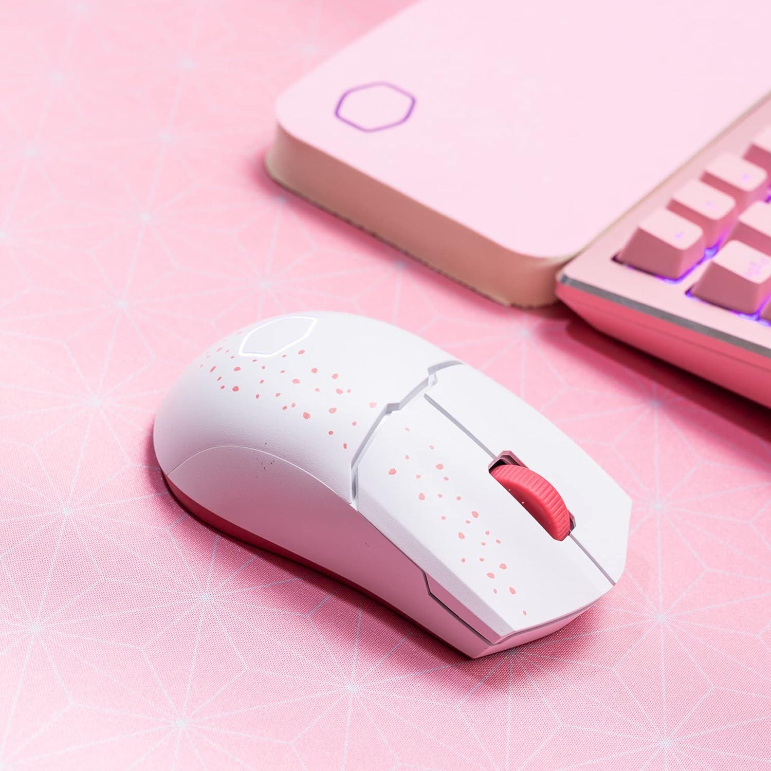 Cooler Master MM712 Wireless Gaming Mouse Black with Adjustable 19,000 DPI, 2.4GHz and Bluetooth , Ultraweave Cable, PTFE Feet, RGB Lighting and MasterPlus+ Software(MM712 Sakura Wireless)
