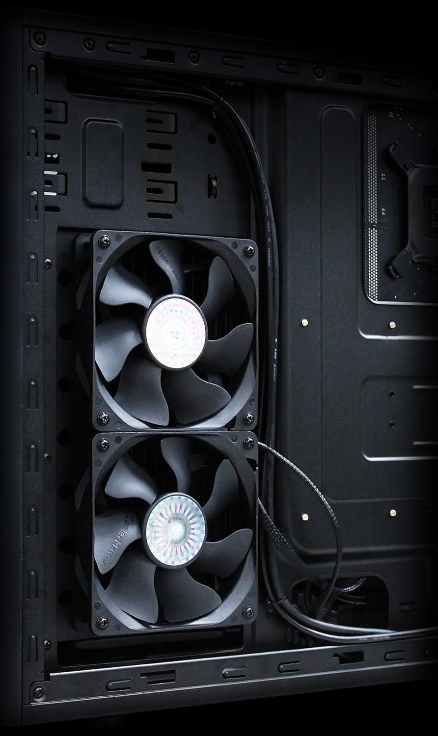 Includes two Cooler Master XtraFlo 120 mm fans (non-LED) arranged for optimum airflow with support for up to 8 fans total