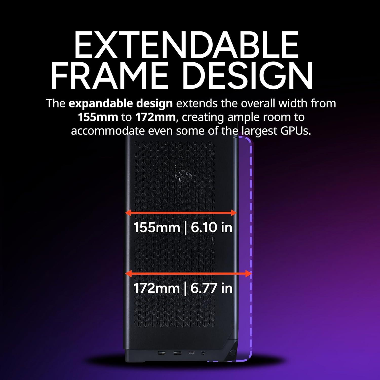 Extendable Frame Design: The expandable design extends the overall width from 155mm to 172mm, creating ample room to accommodate even some of the largest GPUs available.