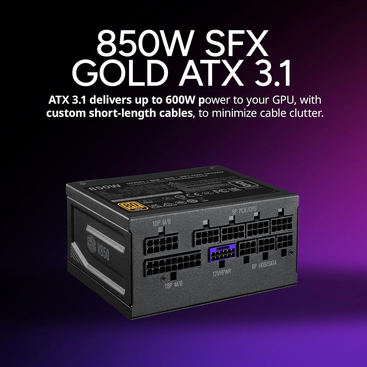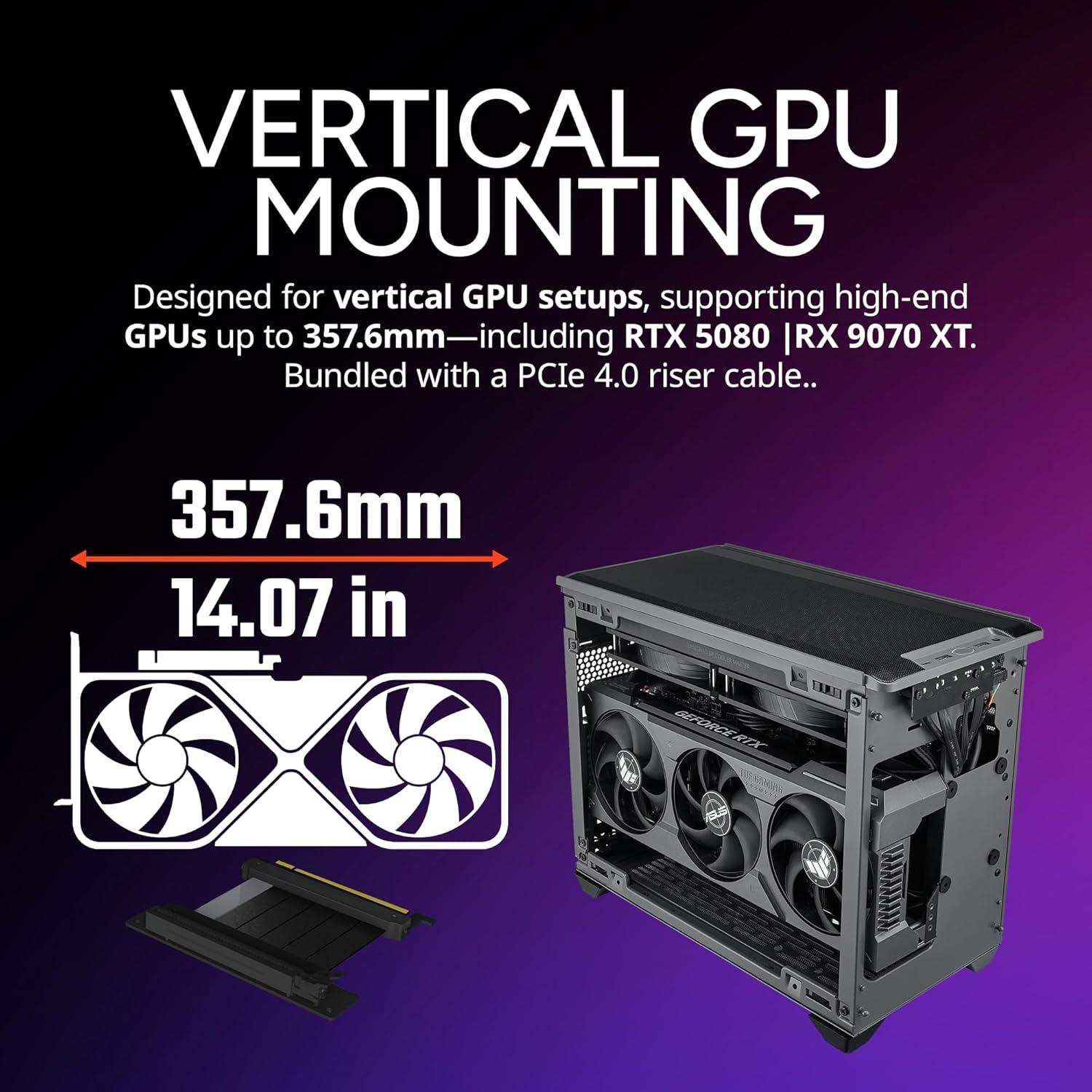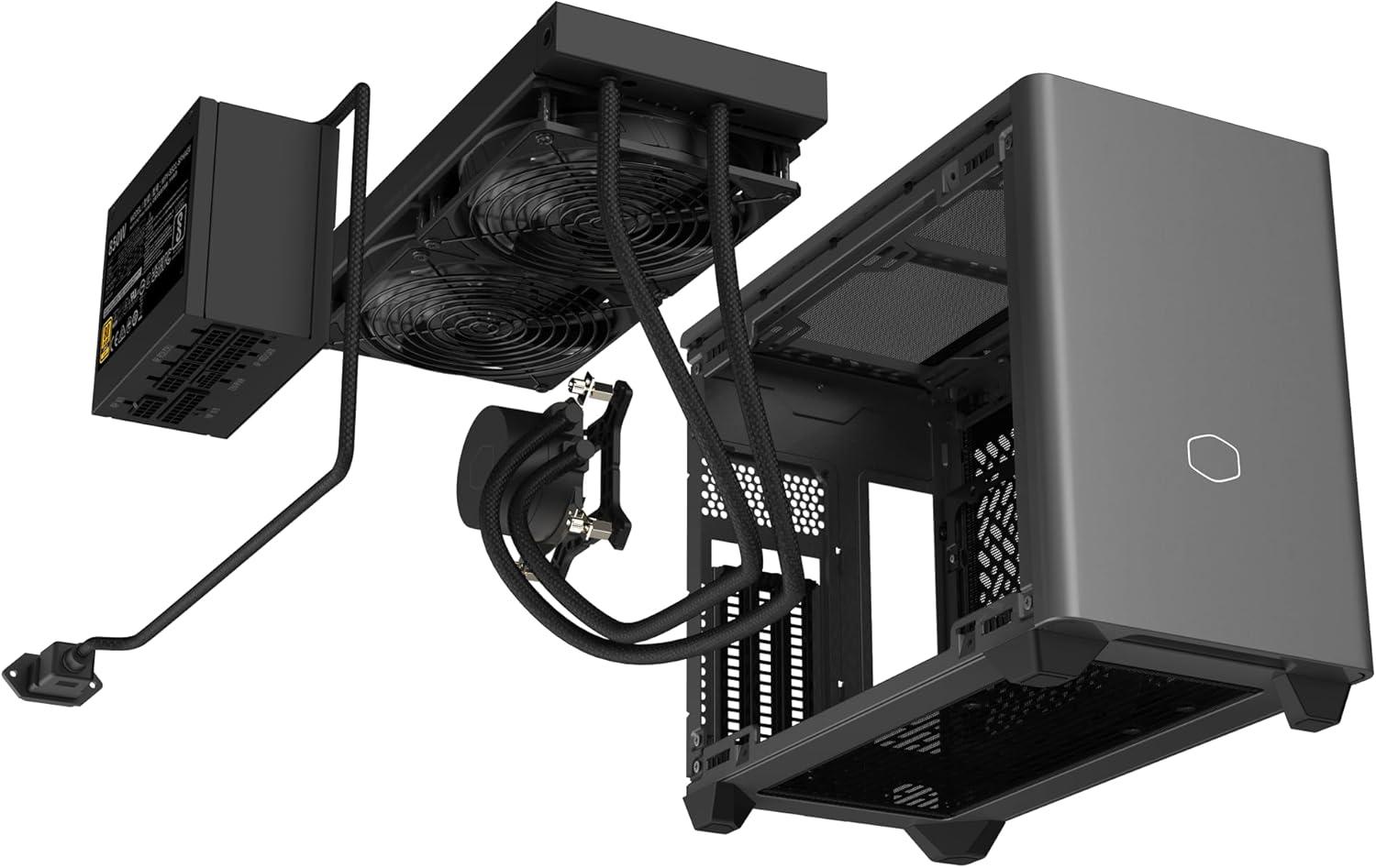 Cooler Master NCORE 100 MAX Bronze Mini-ITX PC Case|AIO|PSU Ready, Included Custom 120mm AIO, V850W SFX Gold PCIe 5.0 PSU, Designed Ready Nvidia RTX 5080 | AMD RX 9070 XT, 356mm GPU Support, DIY(NR200P MAX)
