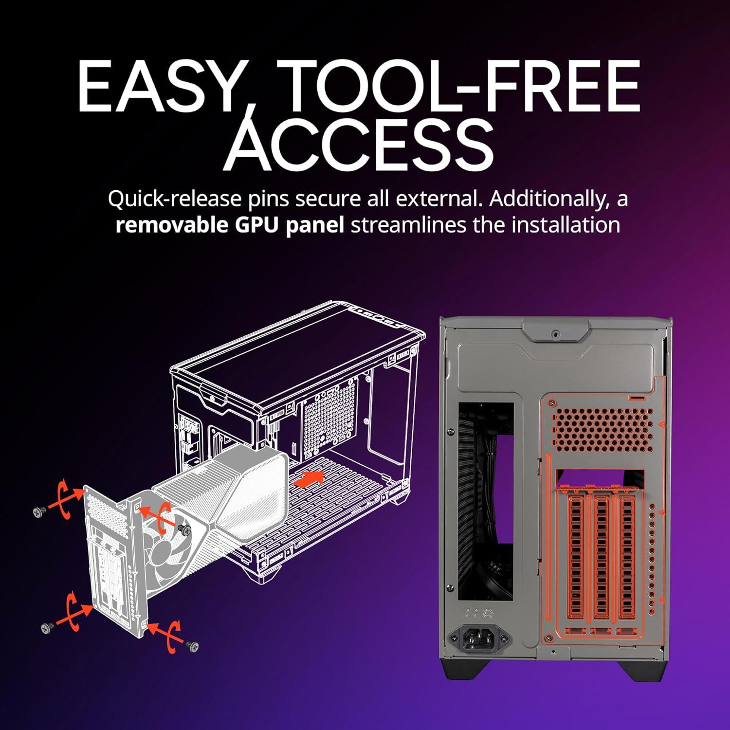 Cooler Master’s NCORE 100 MAX offers the pinnacle solution for maximizing performance while minimizing form factor. Carrying forward the legacy of Cooler Master’s high-performance MAX series, the NCORE delivers superior cooling, power, and an array of new features. These include a minimal footprint, anodized aluminum paneling, expandable width, support for 4-slot thick GPUs, compatibility with the latest graphics cards, and more. The NCORE 100 MAX prioritizes versatility, compatibility, and performance without compromising its sleek, space-saving design. Elevate your build to its maximum potential with the NCORE 100 MAX.