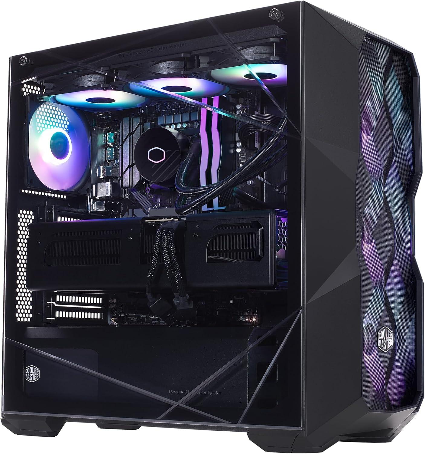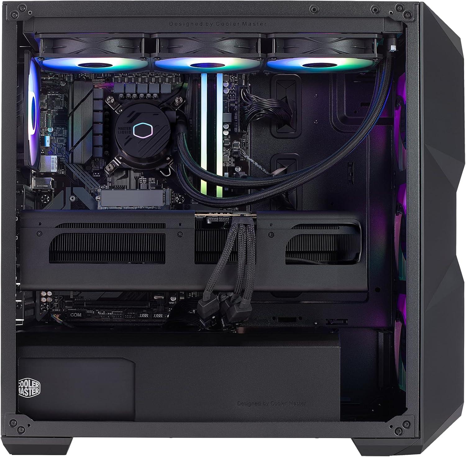 Cooler Master TD5 Pro – Intel Ultra 7 265KF 3.9GHz (5.5 GHz Turbo) | RTX 5080 16GB | Gigabyte Z890 WiFi Motherboard | 32GB DDR5 6000MHz | 2TB Gen4 M.2 | WiFi | Windows 11 | 360 AIO | Gold 850W PC(RTX 5080 | 9800X3D)