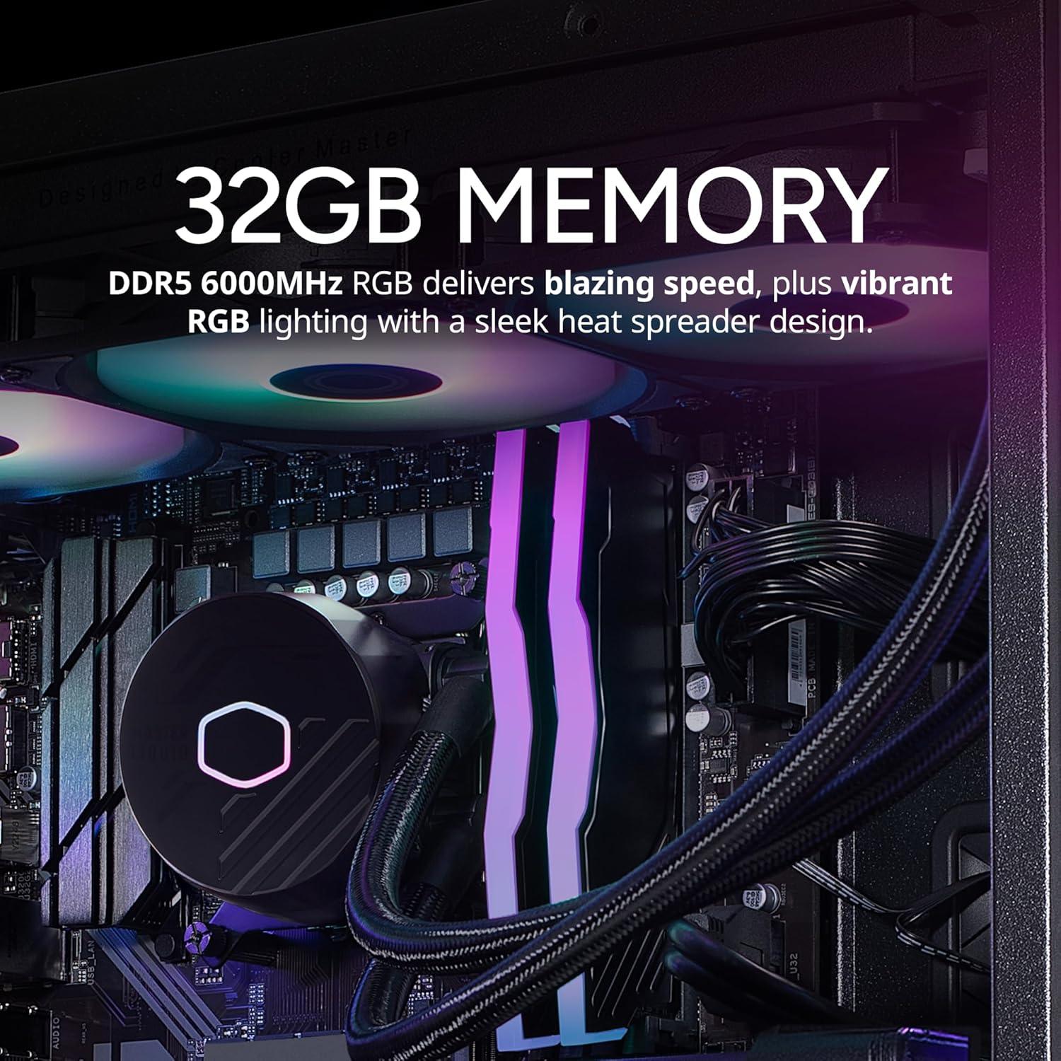 SUPERIOR MEMORY: 2TB Gen4 M.2 SSD offers next-gen storage with a Gen 4×4 NVMe controller, delivering high-speed performance for apps, photos, media, and games | 32GB (2x16GB) DDR5 6000MHz RGB RAM w/ heatsink delivering blazing speed, plus vibrant RGB lighting