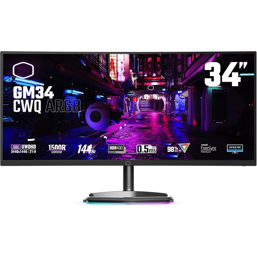 Cooler Master Tempest GP27U 27″ 4K UHD 3840 x 2160 Quantum Dot MiniLED Gaming Monitor, HDR1000 Ready, FreeSync/G-Sync, 160Hz, 1ms Response, 98% DCI-P3, VESA Mounting Tilt & Swivel Adjustment,Black(GM34-CWQA 34” ARGB Curved)