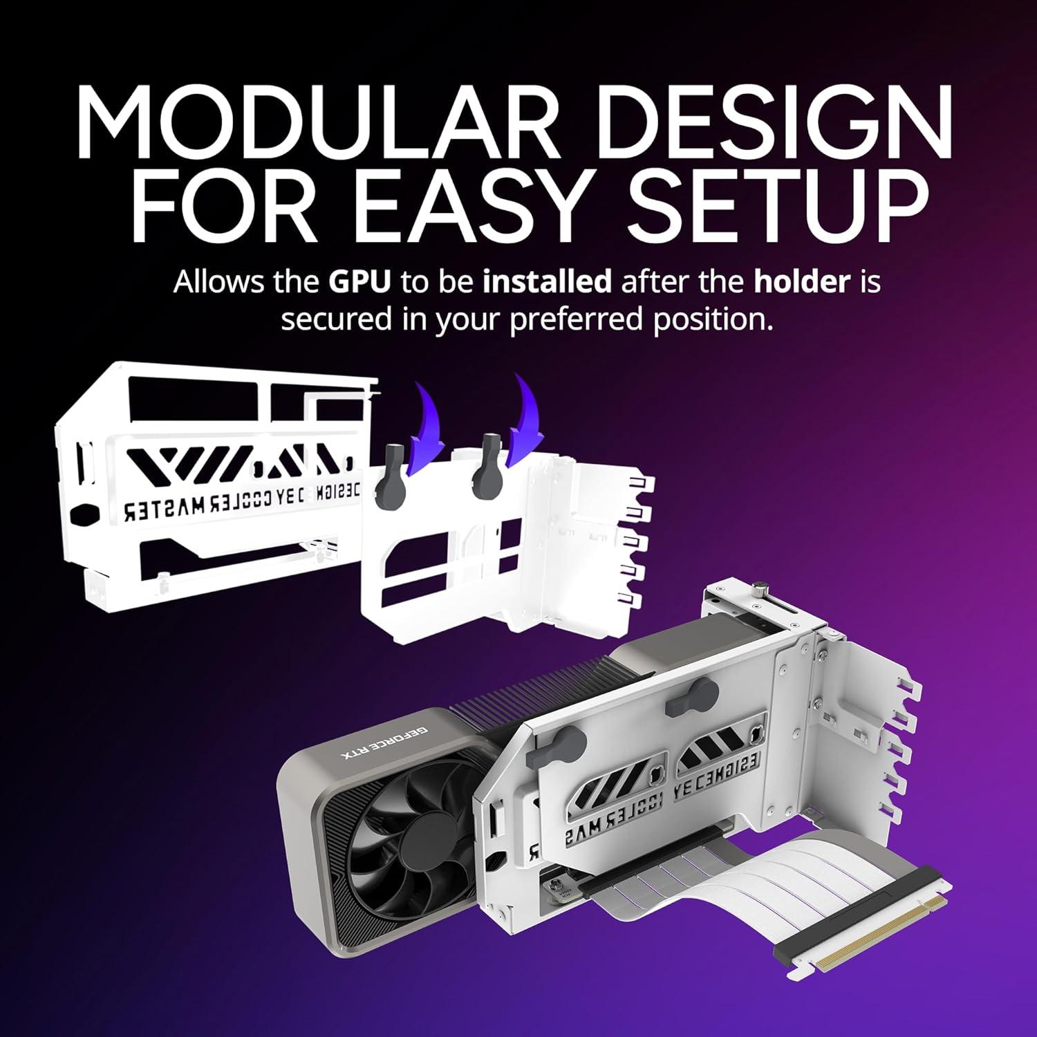 Cooler Master Vertical GPU Card Holder Kit V3 White , PCIe 4.0 5.0 Motherboards GPUs RTX 5090 RX 9070 XT, ABS Casing, 165mm Length, Modula Adjustable for E-ATX ATX Micro ATX Case(Vertical Holder PCI-E 4.0)